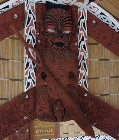 This is a perfect example of, the blending of Maori culture with Christianity in reference to Hagoth the boat builder, as the Maori too were canoe builders. Hakota is depicted here among the most beautiful, bold, and intricate kowhaiwhai designs in Maoridom.